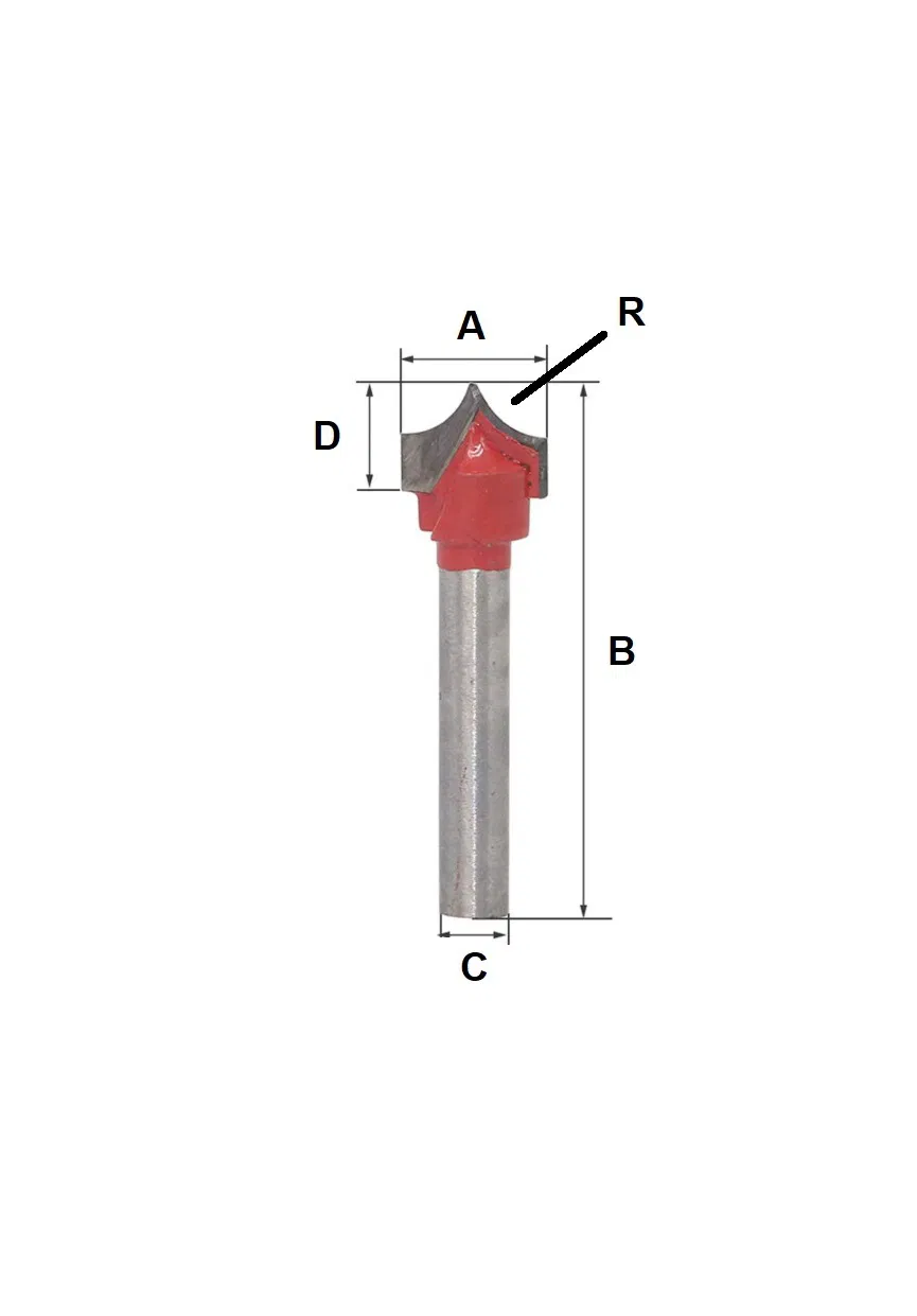 כרסום מקל סבא בסיסי מידות כרסום A: 15.9 MM B: 42 MM C: 6 MM D: 11 MM R : 7.96
