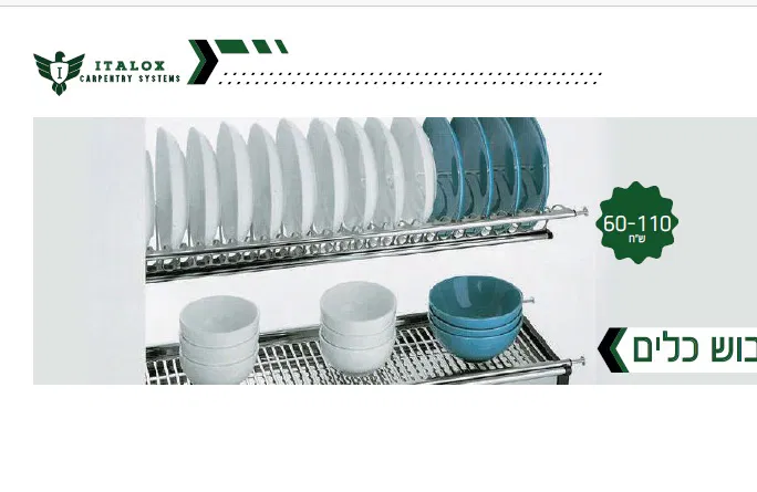 מפרט טכני: מסגרת אלומיניום בגימור אנודייז. רשתות נירוסטה איכותית להנחת כלים. מגש ניקוז נשלף לאיסוף מים כושר נשיאה: עד 20 ק"ג. מידות סטנדרטיות לארונות במידה : 450/600/800/900/1000 מ"מ. התקנה פשוטה וחיבור מהיר.